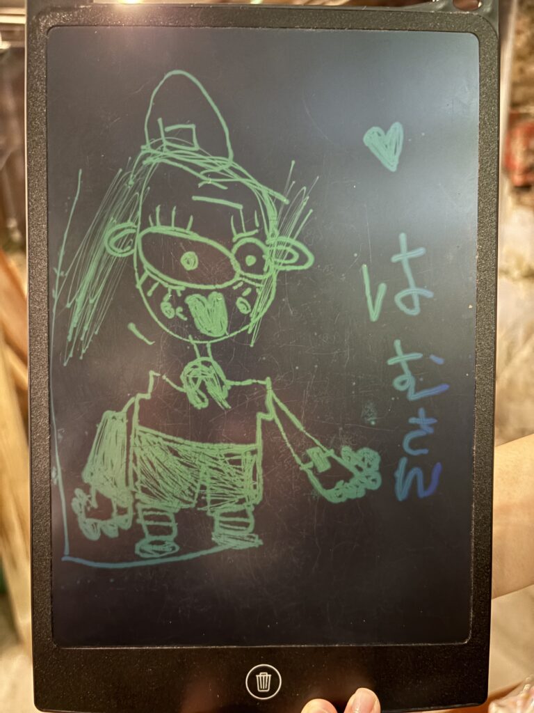 先日、中秋節BBQを身内で行ったのですが、その時に、はるか(お局ぱらちゃんの娘)に描いてもらった俺が秀逸だったので、ここに展示しておきます。
