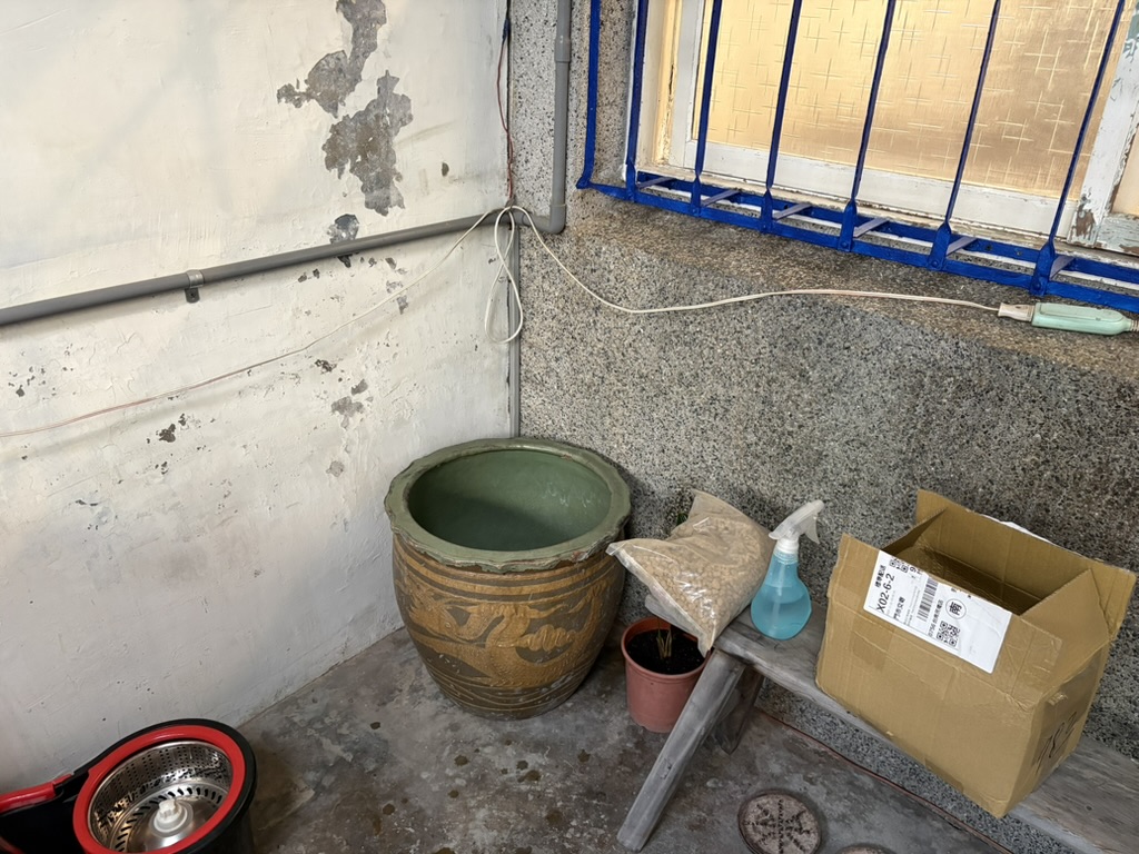 はむ家の玄関前では、2つの鉢にお魚を養ってるんだけど、自作濾過装置が穴だらけにピューピュー水が漏れ出したので、この夏にありもんでリニューアルを図った!(DIY大好き♡)
