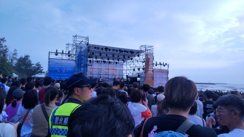 野外ライブ会場の様子。沢山人がいますね!アーティストの演奏する様子はあまり見れませんでしたが砂浜で生の音楽が聞けて最高でした✨