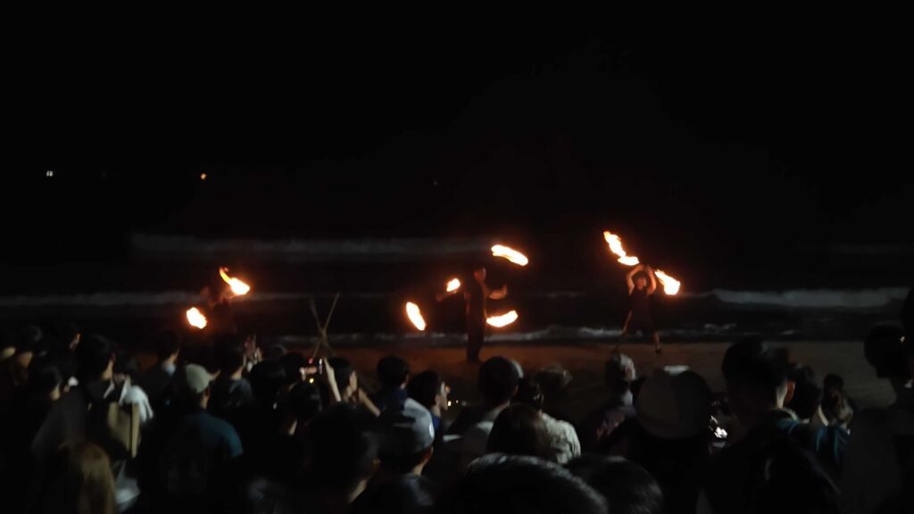 日が暮れて火舞ショースタート!私は少しと遠くからショーの様子を観ました。音楽に合わせて舞っている姿がとても綺麗でした✨