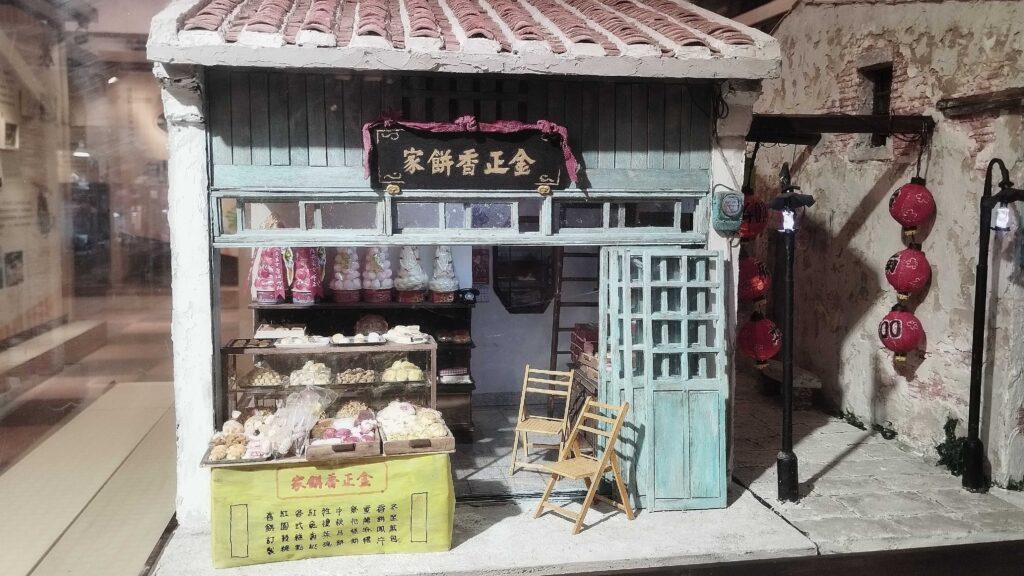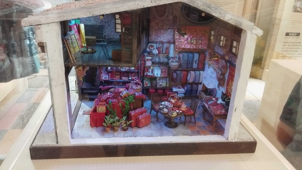 こちらの2つの作品はお店屋さんのようです。台湾の伝統お菓子屋さんとお土産屋さんのミニチュア。1つ1つの文字や中で売られている小物もしっかりと再現されています🙂