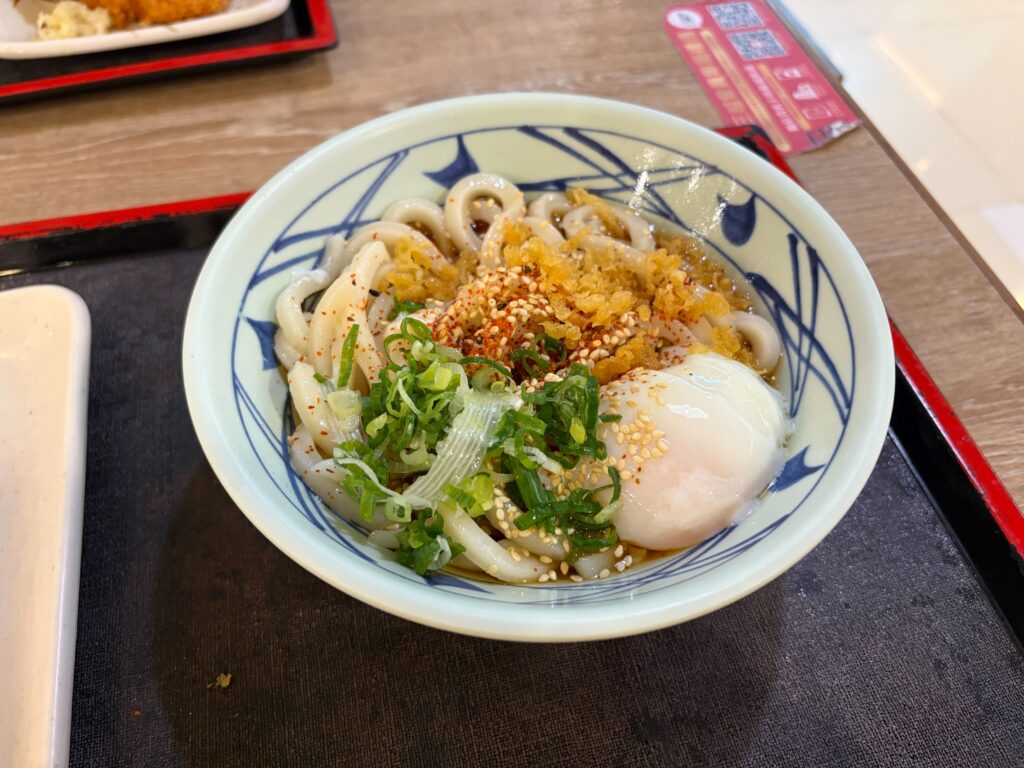 日本だと色んな種類のぶっかけメニューがあると思うのですが、あったのは温玉ぶっかけだけ、、、